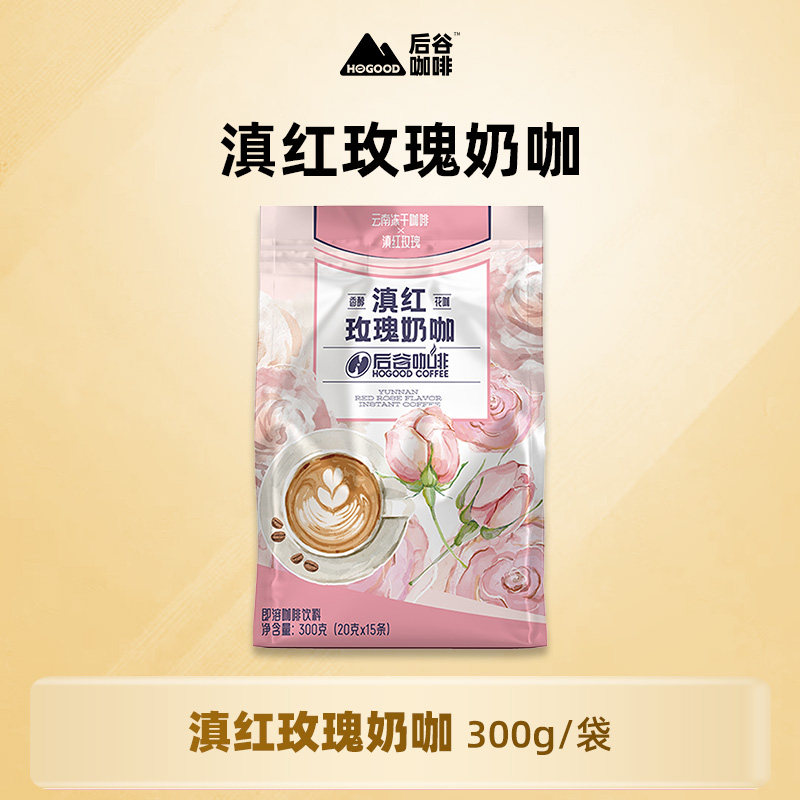 -> 后谷滇红玫瑰奶咖云南普洱茶咖冻干咖啡速溶三合一咖啡粉条装袋装