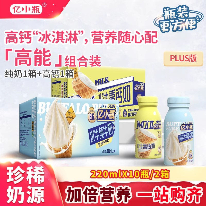 -> 亿小瓶广西水牛奶220ml*20瓶纯牛奶高钙奶儿童成长早餐奶组合装
