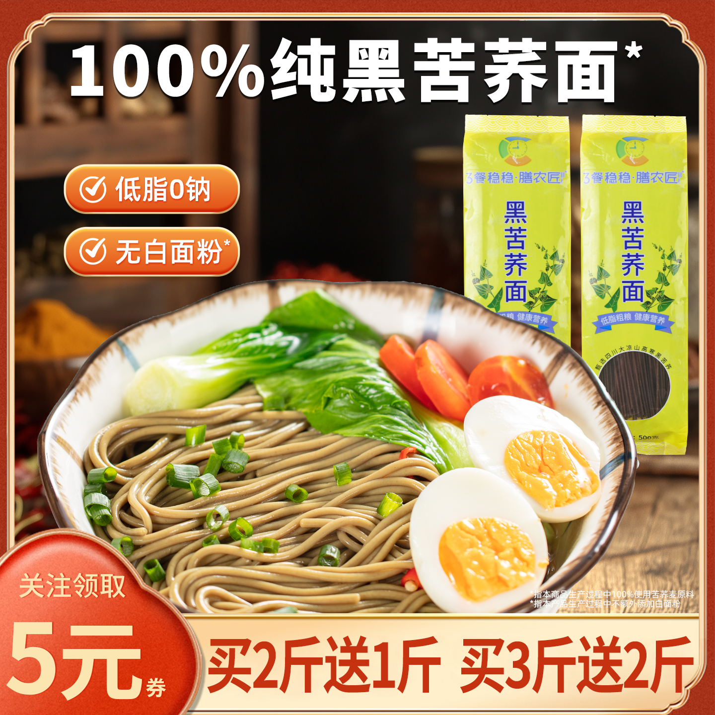 大凉山黑苦荞麦粗粮面条全麦低脂妇孕期糖友糖人主食专用速食品