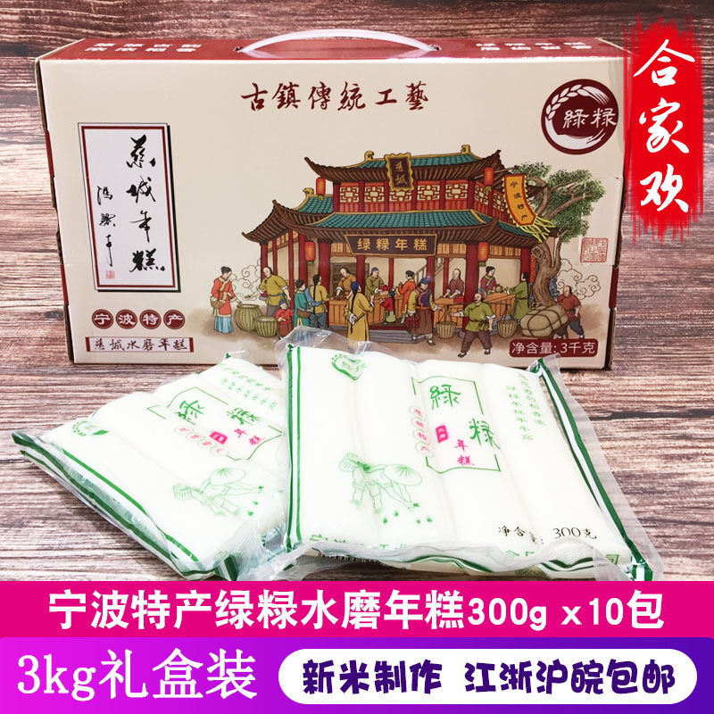 -> 宁波慈城绿禾绿粶年糕条3Kg礼盒装 浙江特产真空装手工水磨白年糕