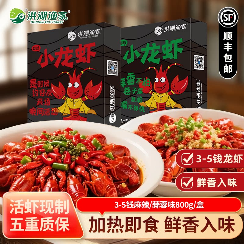 洪湖渔家麻辣蒜蓉小龙虾3-5钱整虾加热即熟食大虾800g*3盒小龙虾