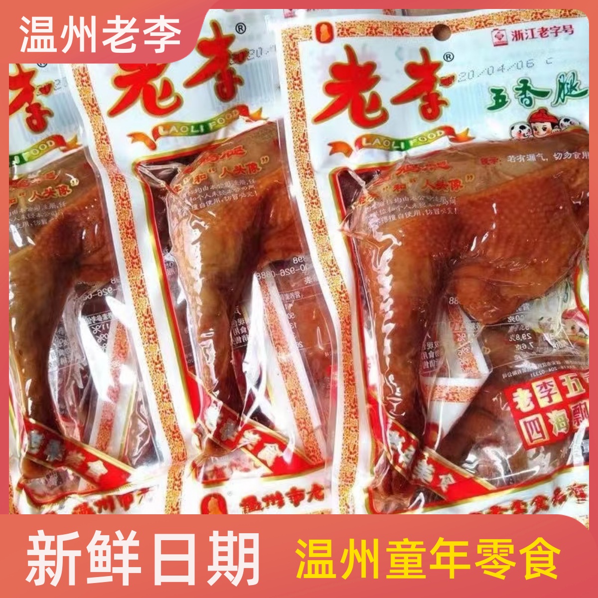 -> 温州老李食品五香腿开袋即食熟食大鸡腿鸡翅整箱浙江卤味零食小吃