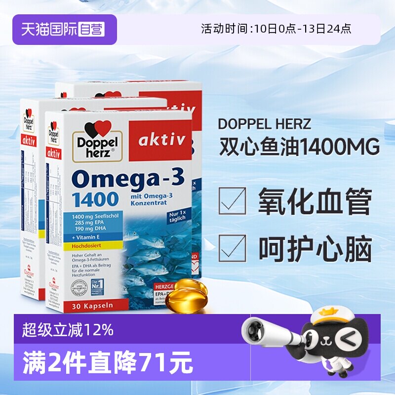 -> 【自营】德国双心深海鱼油omega3欧米茄肝软胶囊成人进口高浓缩*3