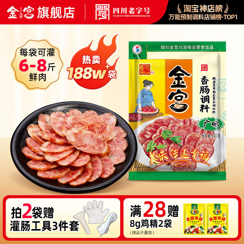 -> 金宫广味香肠调料240g微甜味四川特产家用自制灌烤肠广式腊肠料包