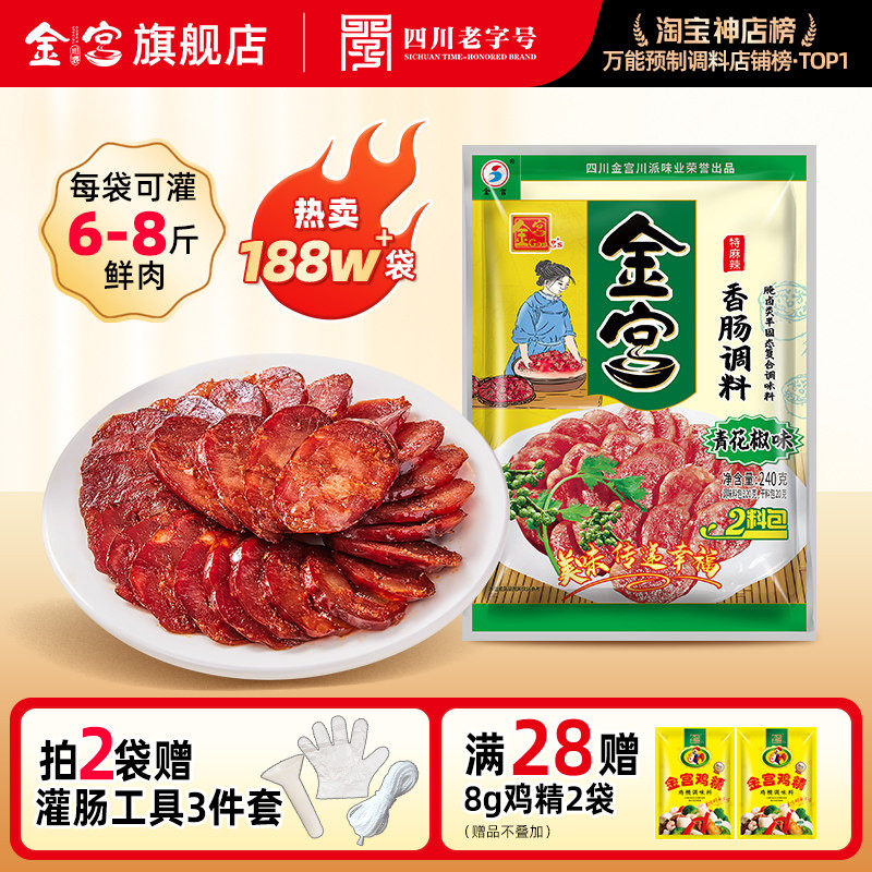 -> 金宫青花椒香肠调料240g特麻辣味家用自制配方烤肠排骨灌腊肠料包
