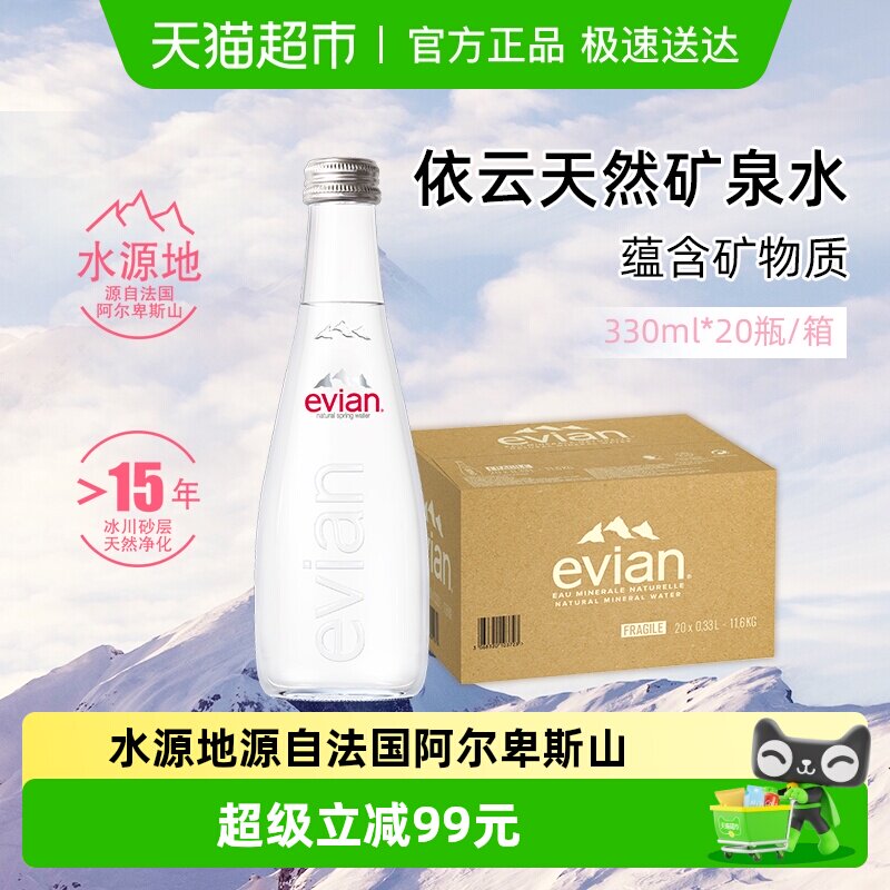 -> 【进口】evian/依云法国高端纯净饮用矿泉水整箱玻璃瓶