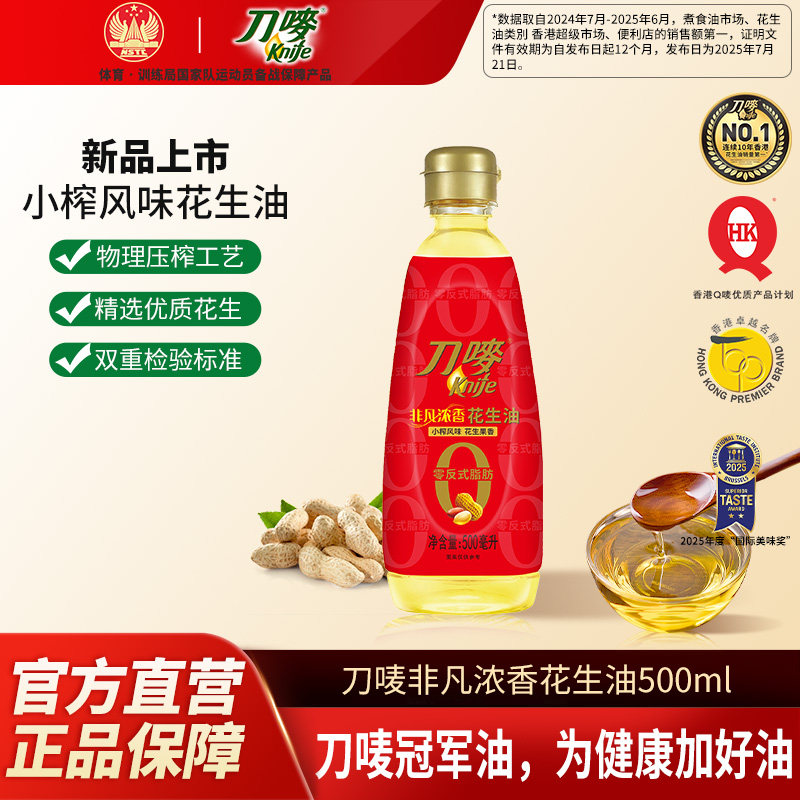 刀唛非凡小榨浓香花生油500ml瓶装 压榨家用小瓶食用植物油