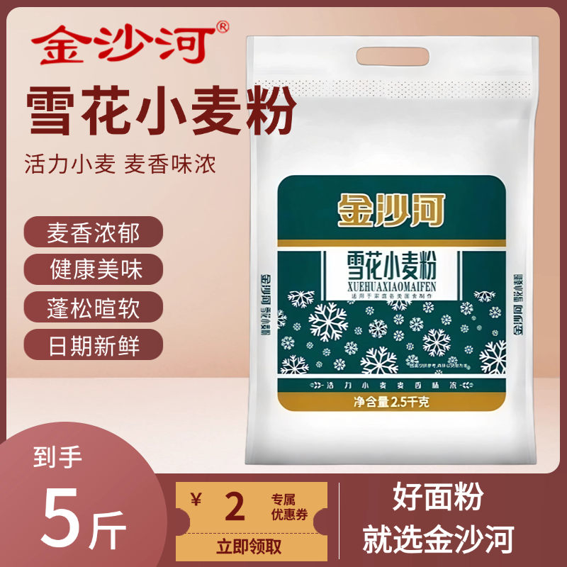 -> [金沙河面粉5斤]雪花小麦粉面包面条中筋家庭多用粉通用烘焙家用