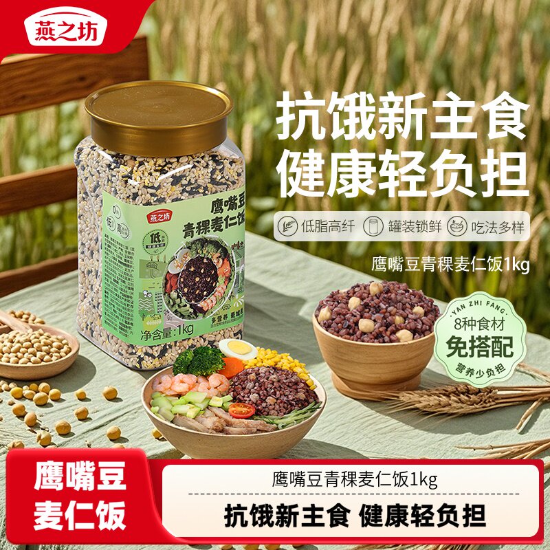 -> 燕之坊鹰嘴豆青稞麦仁饭1kg五谷杂粮粗粮杂粮米饭青稞米黑米胚芽