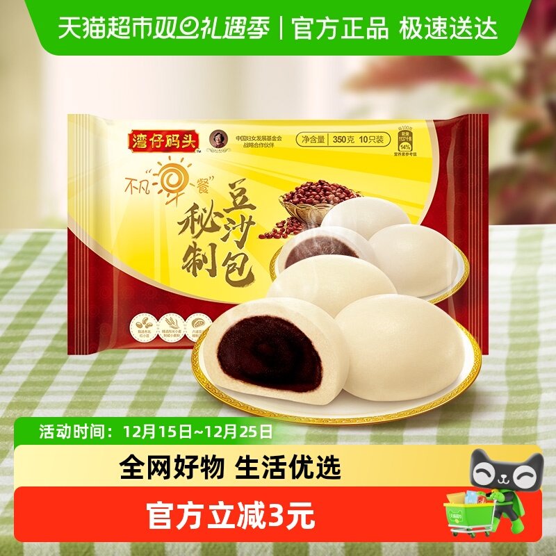-> 湾仔码头速冻食品微波速食秘制豆沙包350g馒头甜包子冷冻包早餐