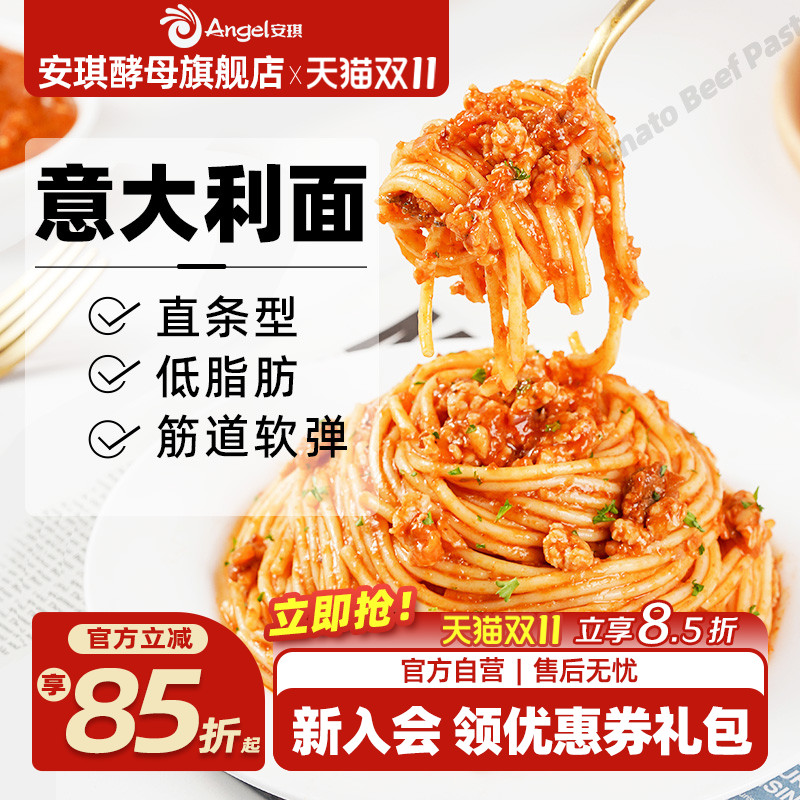 -> 百钻低脂意大利面直条形家用速食面条通心粉牛排意面拌面酱料配料