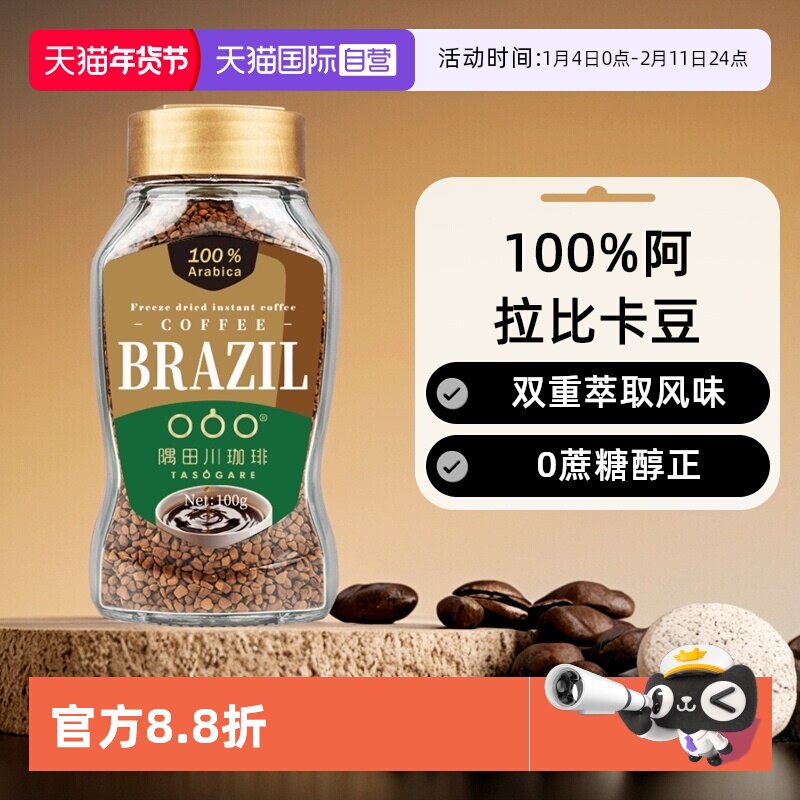 【自营】隅田川巴西进口速溶咖啡0蔗糖黑咖啡100g/瓶 27年4月到期