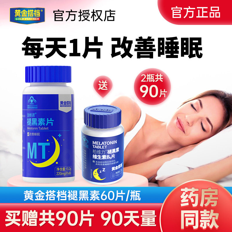 黄金搭档褪黑素90片成人学生褪黑素片改善睡眠官方正品旗舰店同款
