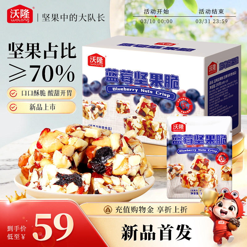 -> 沃隆蓝莓坚果脆250g/箱10包每日坚果果干儿童健康零食