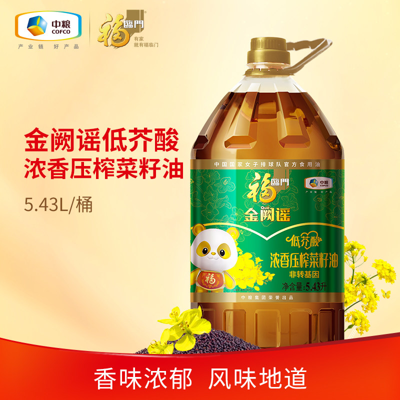 -> 福临门金阙谣低芥酸菜籽油5.43L/桶家用食用油菜油风味浓郁