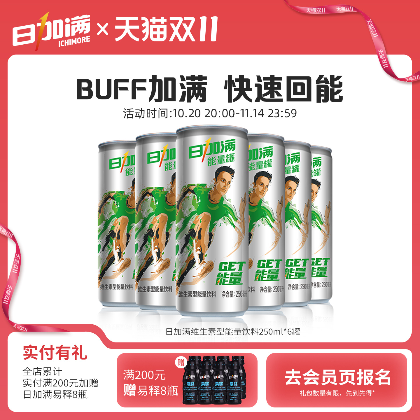 -> 日加满气泡型能量饮料碳酸维生素饮料易拉罐装饮料250ml*6罐