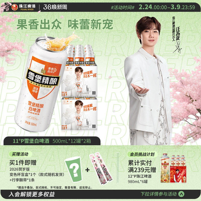 珠江啤酒雪堡精酿白啤酒整箱500mL*12罐*2箱批发罐装比利时风味