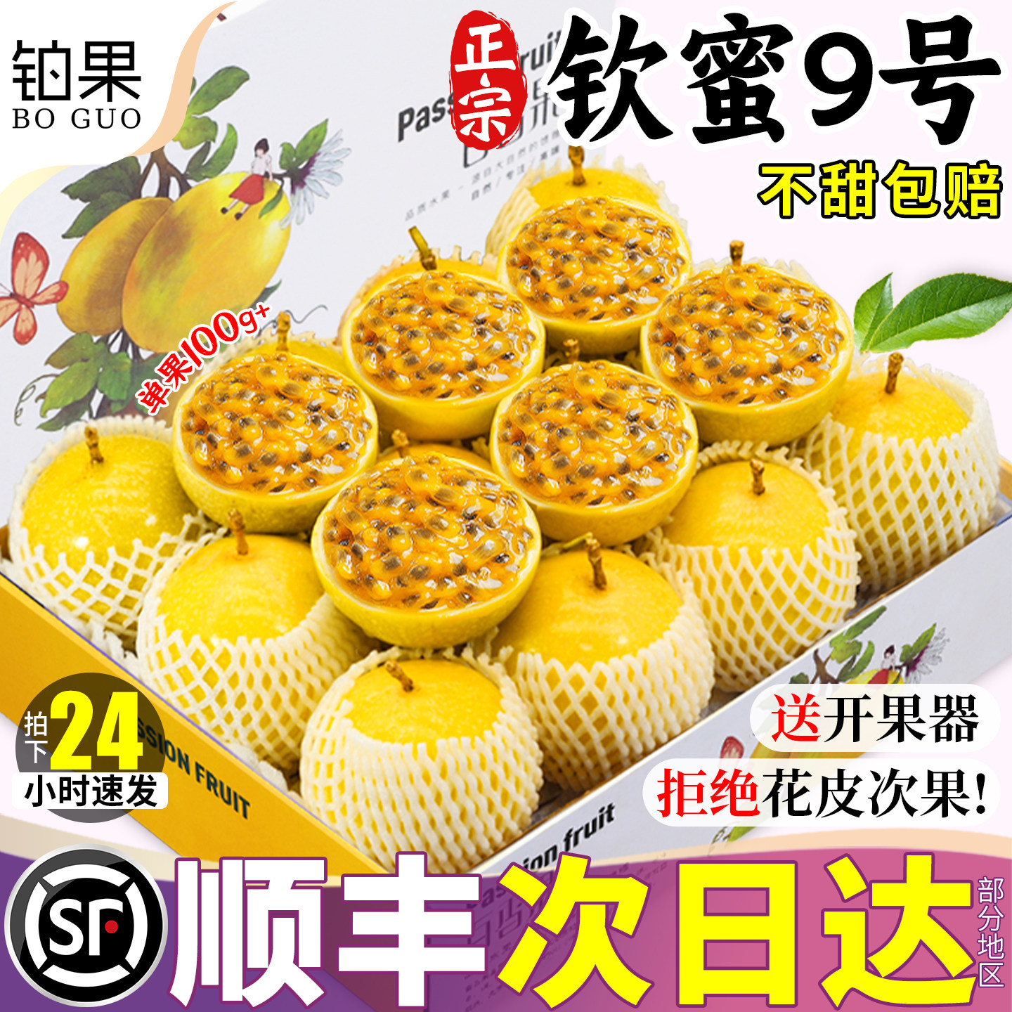 -> 顺丰礼盒10斤百香果黄金钦蜜9号包邮特大果整箱水果一级纯甜现摘5