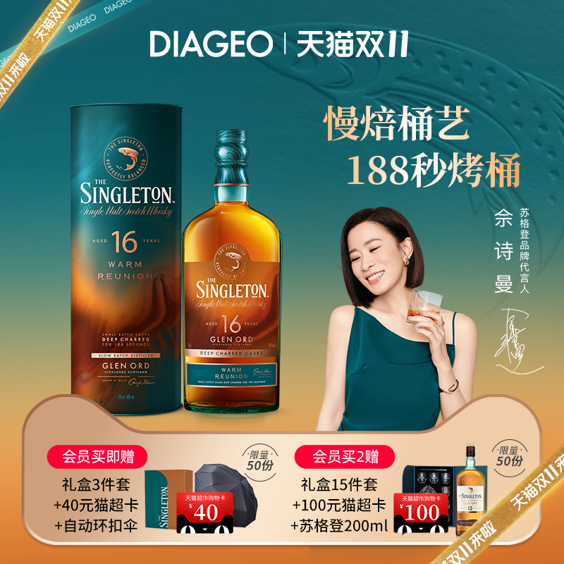 -> 【佘诗曼同款】帝亚吉欧苏格登16年慢火烤桶调香单麦威士忌700ml