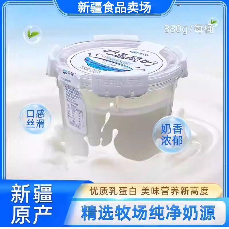 -> 天润酸奶新疆天润奶皮子酸奶奶盖桶装低温酸奶发酵乳880g*2桶装