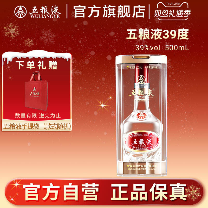 -> 【双旦提前购】五粮液39度500ml宜宾浓香低度白酒送礼非原箱发