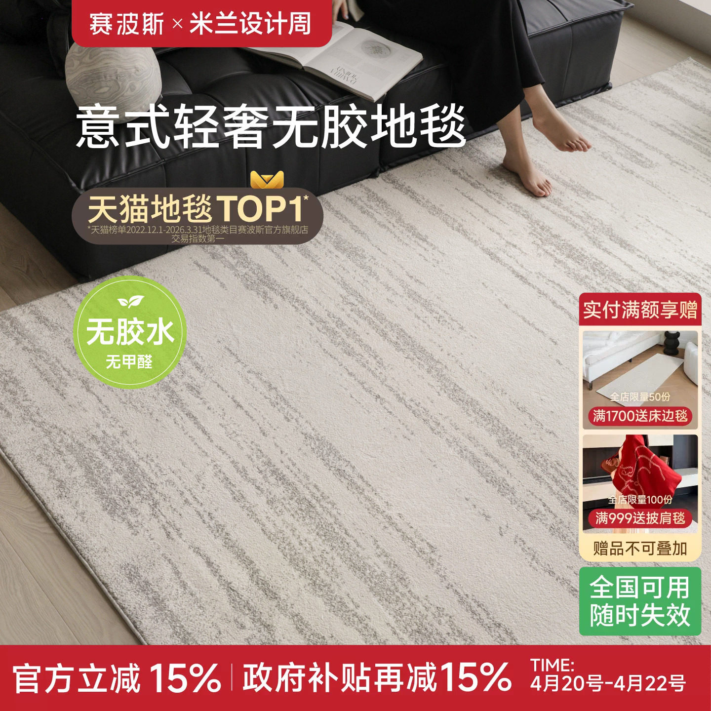赛波斯月光宝石无胶地毯防水抗污无甲醛意式极简客厅轻奢高级卧室