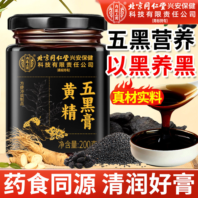 北京同仁堂内廷上用黄精五黑膏官方旗舰店人参桑葚黑米黑豆黑枸杞