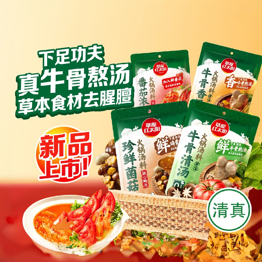 -> 草原红太阳火锅汤料麻辣烫米线汤面烧菜单人份调料清真番茄汤60g