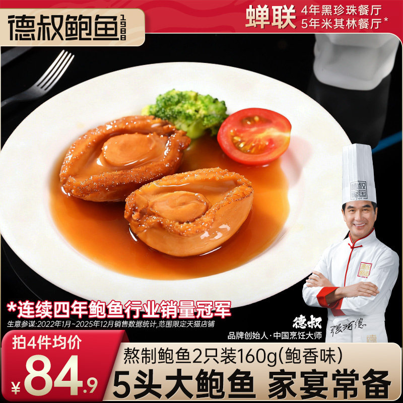 -> 德叔鲍鱼鲍汁5头大鲍鱼2只装罐头餐厅同款速食吉品鲍海鲜干货熟食