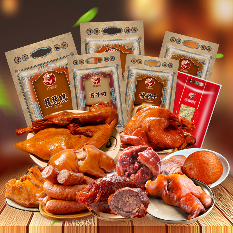 -> 阿满食品酱卤熟食猪蹄肘子酱牛肉香肠鸡鸭猪头肉吉林特产集合