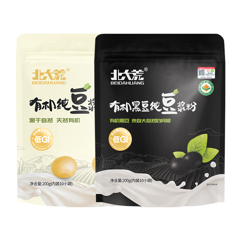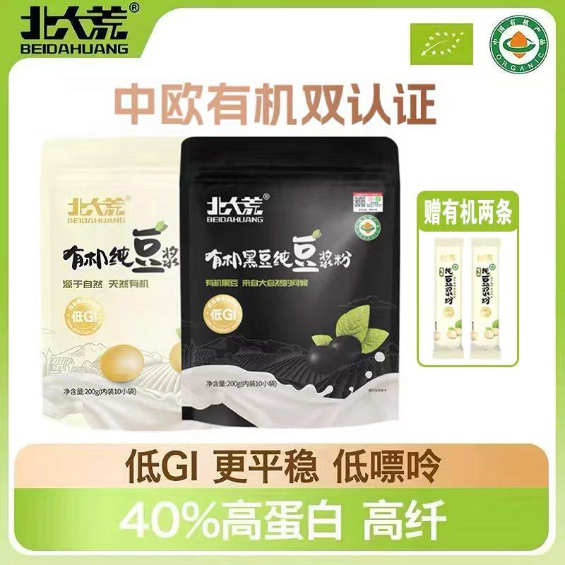 -> 北大荒有机黑豆、纯豆浆粉无添加蔗糖植物蛋白豆浆粉组合装2袋装