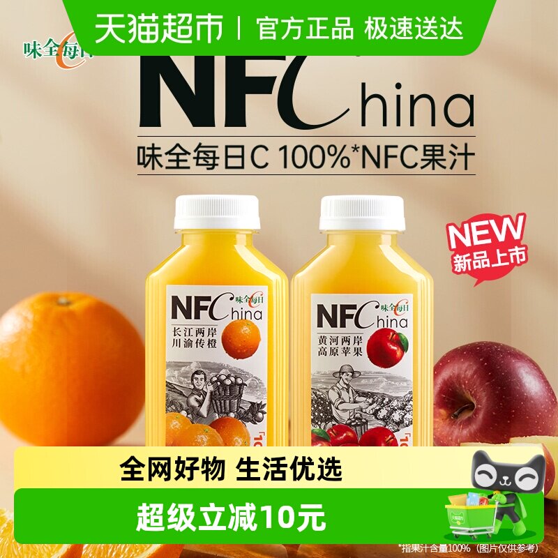 -> 味全每日C果汁NFC橙汁苹果汁组合冷藏饮品100%天然鲜榨