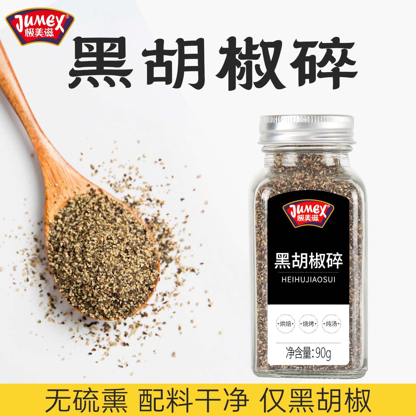 -> 极美滋黑胡椒碎海盐纯正黑胡椒粒粗散粉西餐牛排意面专用烧烤研磨