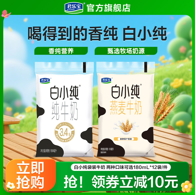 -> 君乐宝纯牛奶白小纯牛奶原味燕麦味多口味牛奶袋装180mL散装