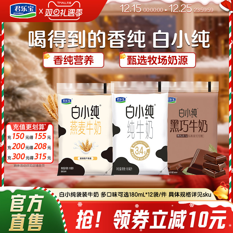 -> 君乐宝纯牛奶白小纯牛奶黑巧味燕麦味多口味牛奶袋装180mL散装