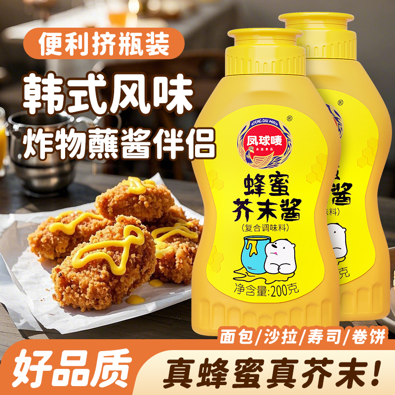 -> 凤球唛蜂蜜芥末酱韩式家用沙拉正宗商用炸鸡虾球吐司三明治蘸酱