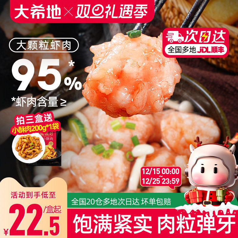 -> 大希地虾滑新鲜手打挤袋火锅食材生鲜活速冷冻虾仁饼低脂虾丸虾球