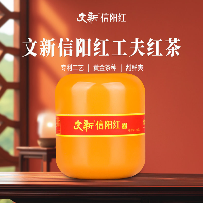 -> 文新信阳红茶茶叶信阳毛尖红茶正宗工夫红茶蜜香型50g罐装
