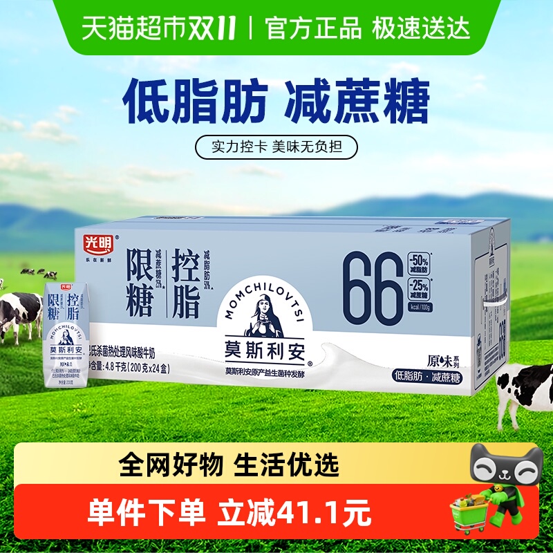 光明莫斯利安原味限糖控脂酸奶200g*24盒低脂早餐学生酸牛奶