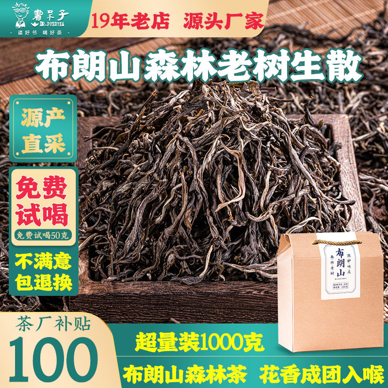 -> 1000克布朗山班章普洱茶生茶散茶云南古树茶礼盒森林老树春茶2斤