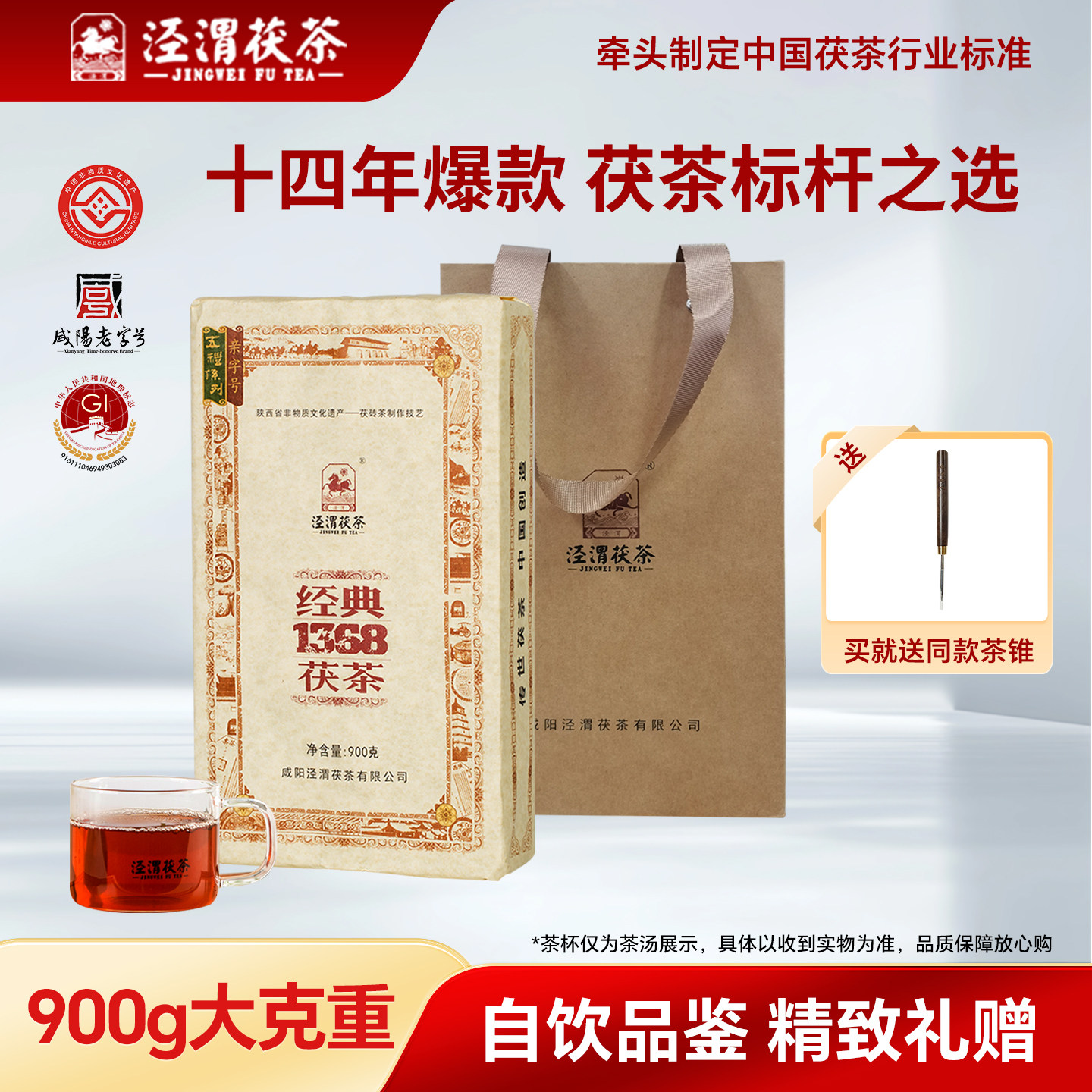 泾渭茯茶 黑茶茯砖 陕西正宗金花伏茶砖泾阳茯砖茶 经典1368 900g