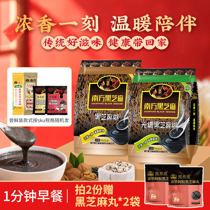 -> 南方黑芝麻糊1kg原味即食营养红枣味无糖微糖多口味谷物代餐粉