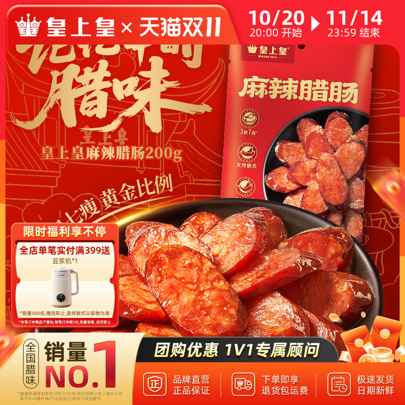 -> 皇上皇麻辣腊肠200g七分瘦正宗湖南特产柴火烟熏纯猪肉香肠