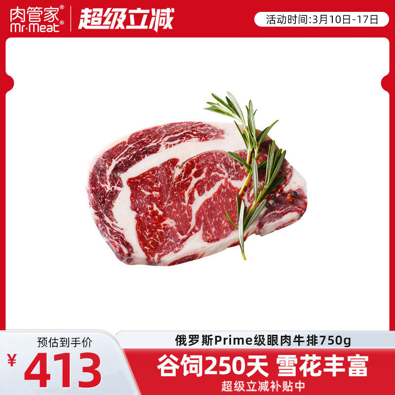 -> 肉管家Prime级原切眼肉牛排黑安格斯谷饲250天雪花肉眼牛肉牛扒