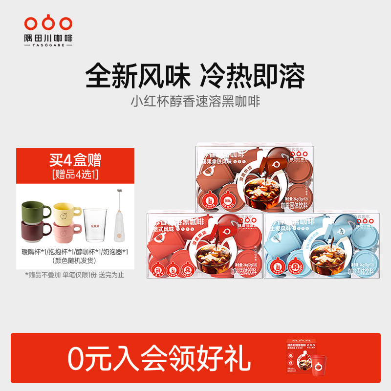 -> 隅田川小红杯速溶意式榛果黑咖啡粉生椰拿铁美式冷萃学生