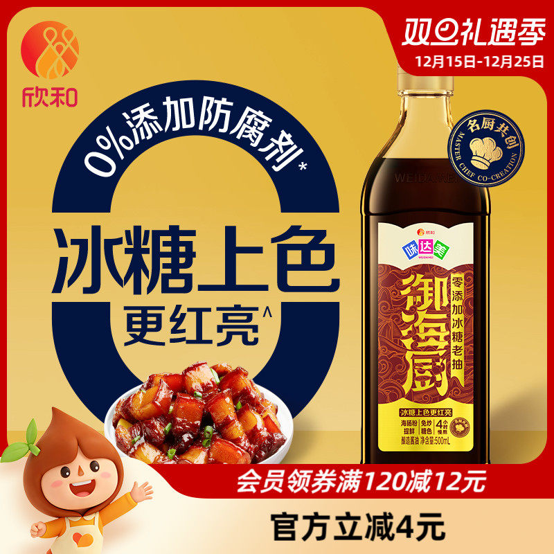 -> 欣和味达美御海厨零添加冰糖老抽500mL上色红亮家用调味品瓶装