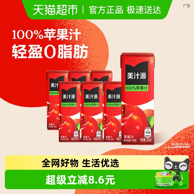 -> 美汁源100%苹果汁0脂肪可口可乐果汁饮料