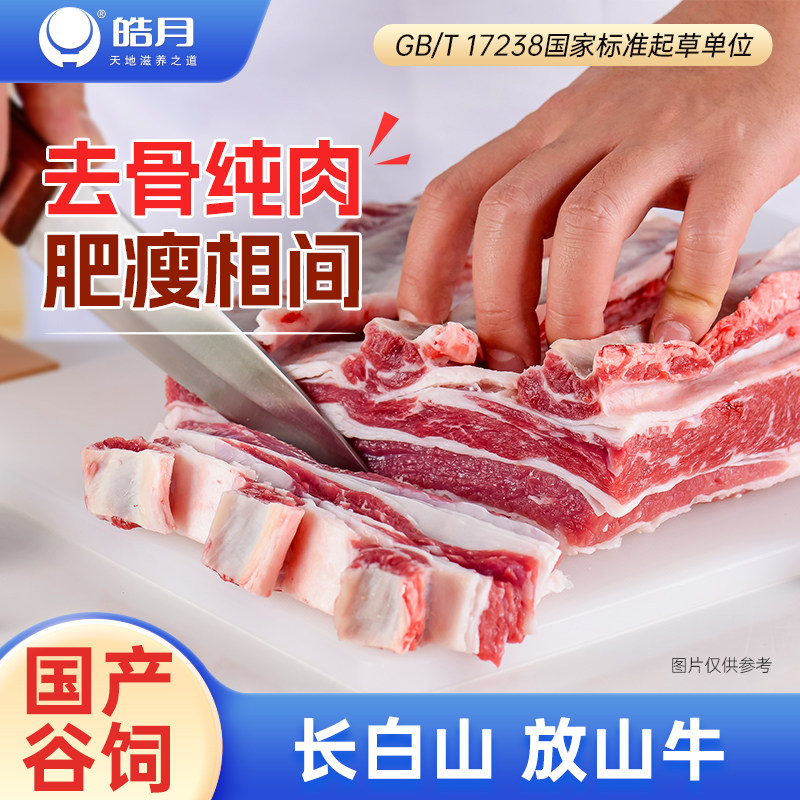 皓月牛肉国产牛肋条肉2斤原切去骨纯肉谷饲黄牛肉生牛肉新鲜冷冻