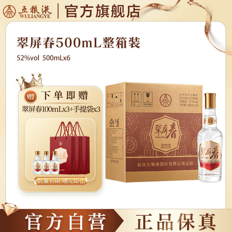 -> 【官方自营】翠屏春52度500mL浓香型白酒五粮液官方正品保真