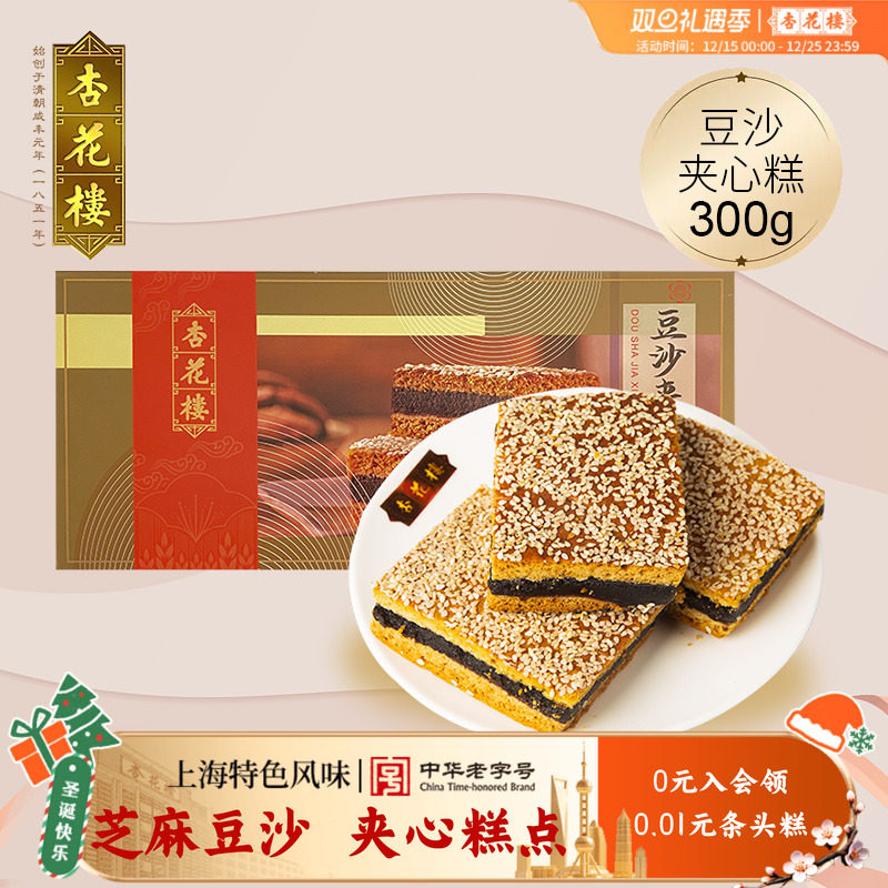 -> 杏花楼中华老字号上海中式传统点心芝麻豆沙夹心糕点茶点早餐300g